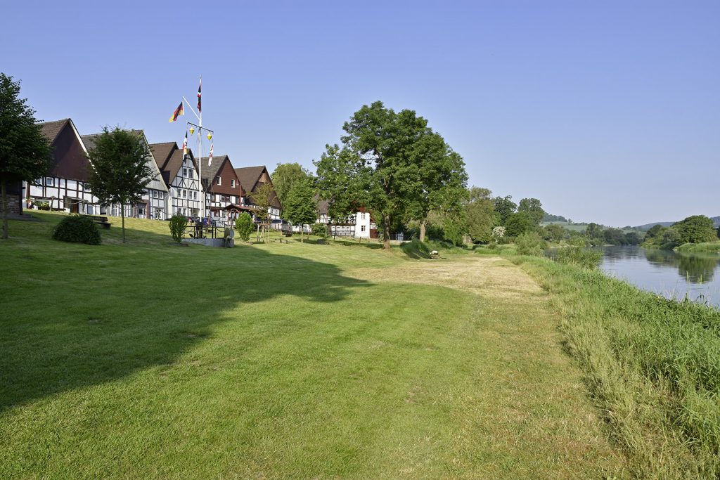 Inmitten der faszinierenden Naturlandschaft in unmittelbarer Nähe der Weser umweht den Gast unserer Ferienwohnung im Alten Weserhof der Hauch einer 500-jährigen bewegten Geschichte. Mit unserer Ferienwohnung in Bevern-Forst bieten wir Ihnen eine außergewöhnliche Urlaubsmöglichkeit inmitten des Weserberglandes. Von der etwa 150 qm großen Wohnung im Gebäude des 1540 errichteten Amtshofes direkt am Weserufer haben Sie einen großartigen Blick auf die Weser und das Wesertal zwischen Holzminden und Polle. Die Wohnung verfügt über eine geräumige Wohnküche, drei Schlafzimmer mit jeweils einem Doppelbett, einen Durchgangsraum mit zwei optionalen Schlafgelegenheiten (eher für Kinder geeignet), zwei Bäder, eine Sauna (die auf Anfrage genutzt werden kann) sowie einem weserseitigen Balkon. Die Wohnung in dem denkmalgeschützten Gebäude wurde jüngst renoviert und vermittelt mit historischen Möbeln, Holzfußböden und uralten Fachwerkbalken romantischen Charme. Wer eine außergewöhnliche historische Unterkunft mitten in der Natur sucht, wird begeistert sein.